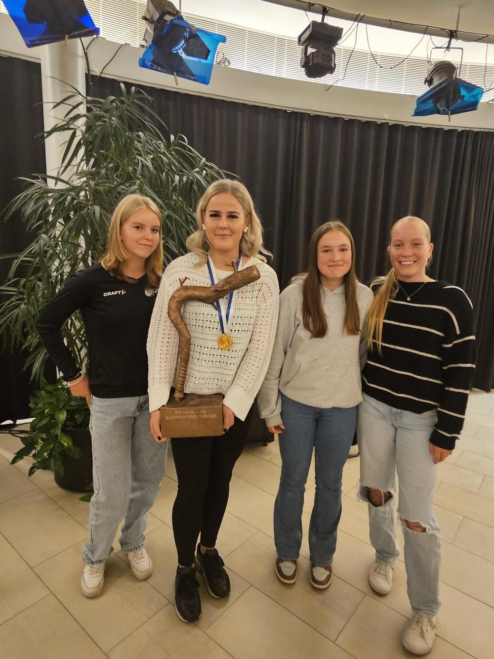 Tilaisuuden jälkeen kamerat räpsyivät, kun Linasta ja pokaalista haluttiin yhteiskuvia junioreiden kanssa. Vielä kerran onnea Lina Suomen mestaruudesta!